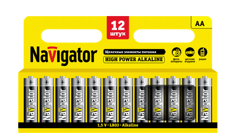 Элементы питания Navigator серии НОВАЯ ЭНЕРГИЯ – щелочная батарейка, обладающая высокими техническими характеристиками которая идеально подходит как для устройств с высоким и средним энергопотреблением, так и для устройств с низким потреблением .Типоразмер AA