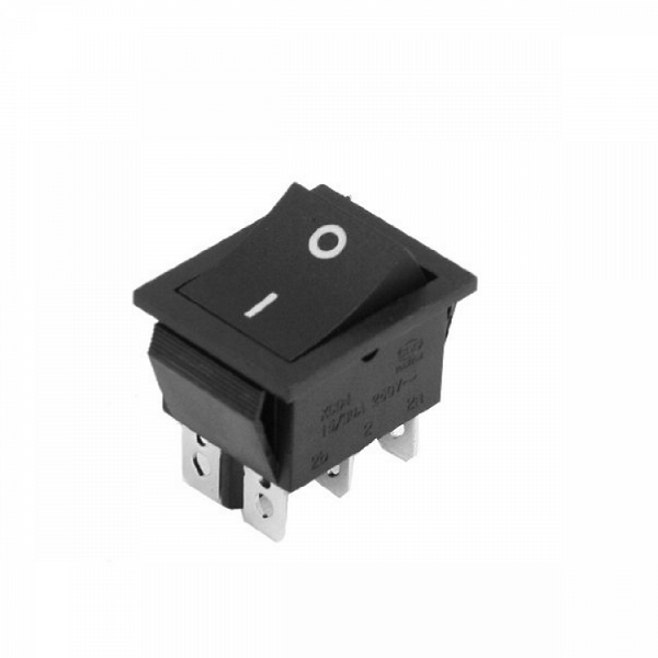 Выключатель клавишный 250V 3А (2с) ON-OFF черный Micro (RWB-101) Выключатель клавишный 250V 3А (2с) ON-OFF черный Micro (RWB-101) предназначен для коммутации электрических цепей переменного тока напряжением до 250В. Клавишные (Рокерные) выключатели применяются в качестве комплектующих изделий различного электрооборудования (в сетевых фильтрах и удлинителях, аудио-оборудовании, блоках питания, электроустановках на различных производствах, автомобилях, и многих других местах). Такой клавишный переключатель имеет два положения. Принцип действия основан на перемещении клавиши в одну из позиций. Для переключения в нужное положение требуется приложить некоторые усилия на клавишу. Монтаж осуществляется без применения винтов на плоских панелях толщиной от 0.8мм до 3мм. Подключение контактов осуществляется плоской клеммой, либо с помощью пайки.