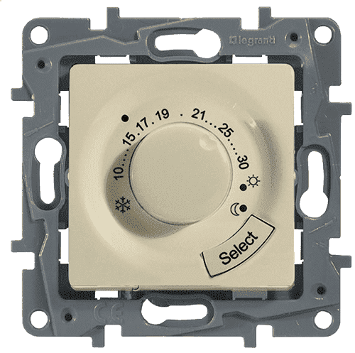 Термостат для теплого пола Legrand ETIKA в цвете слоновая кость – это стильное и функциональное устройство, которое обеспечивает комфортный уровень тепла в помещении. Он оснащен датчиком, который позволяет точно контролировать температуру и поддерживать ее на необходимом уровне. Благодаря простому и удобному управлению, термостат легко настраивается на индивидуальные предпочтения пользователя. Кроме того, его дизайн в цвете слоновая кость идеально впишется в любой интерьер, придавая ему изысканный вид.