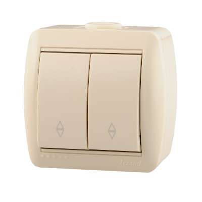 Выключатель двойной проходной. Особенности заключаются в европейском дизайне. в повышенной безопасности негорючего поликарбонатного ПК-пластика. в более прочном и устойчивом к механическому воздействию покрытии. в простом монтаже и демонтаже.Напряжение