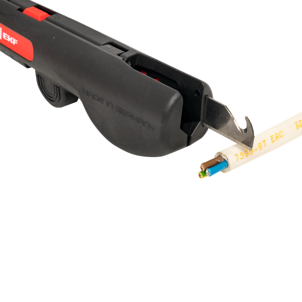 Многофункциональный стриппер ws-16 EKF Professional, изготовленный в Германии, подходит для снятия, в том числе продольным резом, внешней оболочки кабеля диаметром 8-13 мм и снятия изоляции жил сечением 0,5-6 мм². В инструменте предусмотрен кабельный нож с десятиступенчатой регулировкой и фиксацией. Заменяемый нож из Золингеновской стали значительно увеличивает срок службы инструмента.
