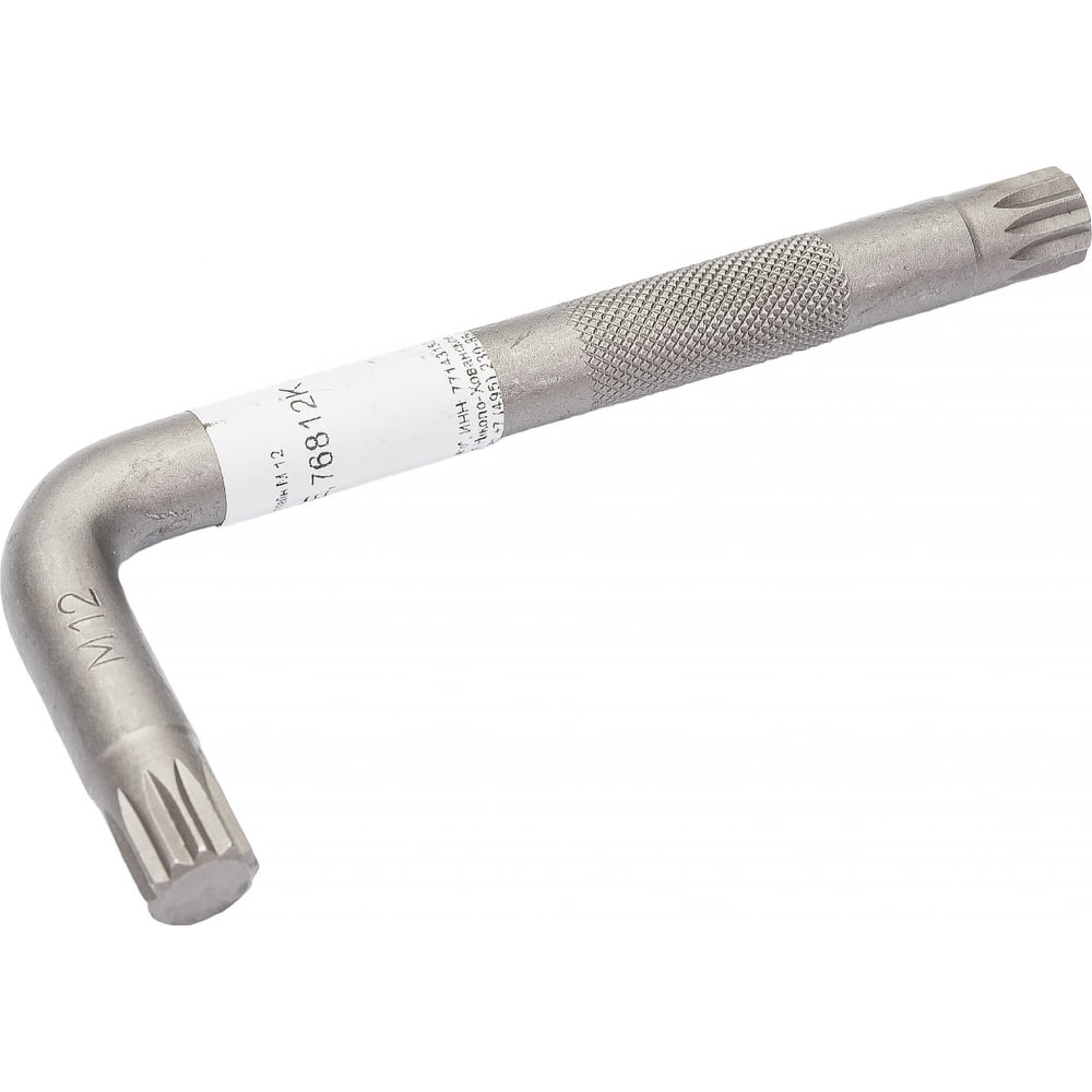 Г-образный ключ FORCE сплайн М 12 76812K предназначен для обслуживания крепежных элементов с шлицем Spline. Изделие представляет собой металлический стержень Г-образной формы. Корпус изготовлен из прочной стали. Размер - М 12.