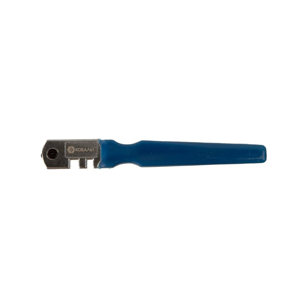 6-роликовый стеклорез в блистере КОБАЛЬТ 911-116 представляет собой простой и удобный в работе инструмент для разрезания стекла толщиной от 2 до 5 мм. Длина изделия составляет 130 мм. Рукоять особой формы позволяет надежно удерживать стеклорез в руке и выполнять рез без особых усилий. В рабочей части есть выемки для аккуратного отламывания стекла.