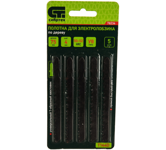 Полотна для электролобзика по дереву, 5 штук T144D, 75 х 4 мм от компании СИБРТЕХ - это высококачественные и прочные полотна, предназначенные для работы с деревом. Изготовлены из прочного материала, обеспечивают точное и чистое распиливание древесины. Идеально подходят для использования в электролобзиках. Упаковка содержит 5 штук полотен, каждое размером 75 х 4 мм. Полотна T144D отличаются долгим сроком службы и эффективной работой при обработке древесины.