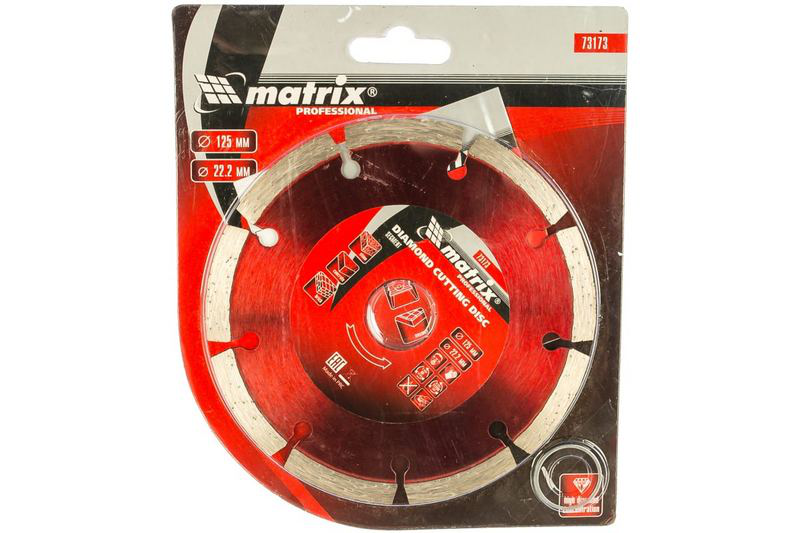 Диск алмазный отрезной сегментный, 125 х 22,2 мм, сухая резка// MATRIX Professional - это надежный и эффективный инструмент для профессиональных строителей, ремонтников и всех, кто нуждается в качественной резке материалов.