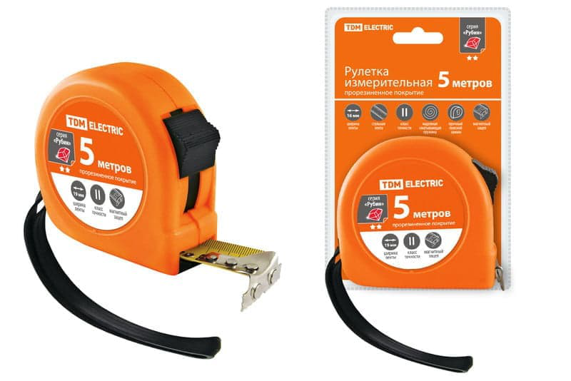 Измерение длины предметов, расстояний, проведение разметочных работ. Незаменимый инструмент при строительных и отделочных работах. Для рулеток серии ''Рубин'' предусмотрен магнит в крючке и удобное прорезиненное покрытие корпуса, исключающее выскальзывание рулетки из рук.
