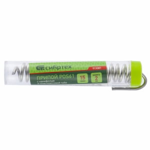 Припой с канифолью Сибртех D 2мм, 15 г, POS61, в пластмассовой тубе - отличный выбор для профессиональных мастеров и любителей, которые ценят качество и надежность при работе с электроникой и металлом.