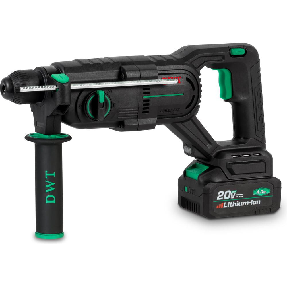 Бесщеточный аккумуляторный перфоратор DWT ABHP-20-22D-4C2 BMC предназначен для сверления отверстий в бетоне, природном камне, кирпиче и работ по штроблению. Бесщеточный двигатель легко справляется с большими нагрузками. Оснащен ограничителем глубины засверливания и дополнительной рукояткой. Удобный и мощный - подойдет для ремонта и строительных работ.