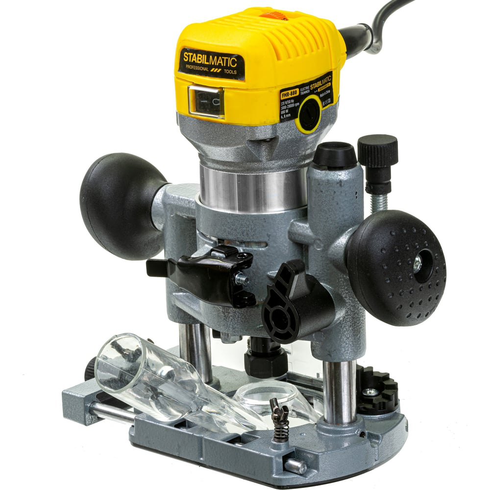 Фрезер кромочный электрический FRH-880 производство STABILMATIC, 880Вт применяется в различных столярных и плотницких работах для обработки кромок и профилей, фасок в деревянных конструкциях, для изготовления пазов и т.д. Рукоятки с нескользящими накладками способствуют надежному и комфортному хвату инструмента. Линейка, расположенная в боковой части корпуса, обеспечивает точную регулировку глубины фрезерования. Инструмент можно настроить на выполнение определенной задачи путем изменения числа оборотов. FRH-880 предлагает с 6 диапазонами переменной скорости вращения 3 000 - 28000 об/мин может легко справиться с различными породами мягкой и твердой древесины. Достаточная мощность, два размера цанг для использования разных типов фрез.