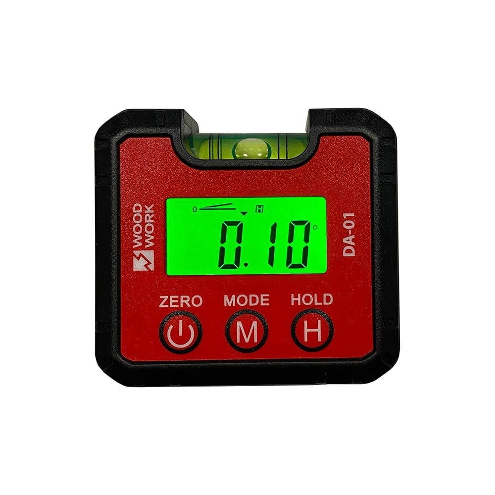 Цифровой магнитный уклономер с уровнем WOODWORK DA-01 является универсальным прибором, разработанным для быстрой и удобной работы. Изготовлен из безопасного качественного пластика, в состав которого не входят вредные химические примеси, соответствующего требованиям стандартов по электромагнитной совместимости и электробезопасности. Для удобства использования в корпус снизу вмонтированы мощные магниты. В качестве питания используются две батарейки ААА, что обеспечивает более длительный срок работы. Конструкция уклономера включает встроенный высокоточный пузырьковый уровень.
