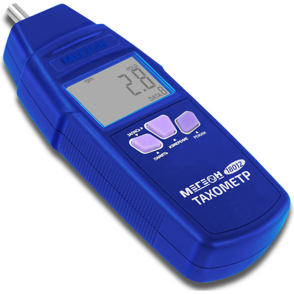 Портативный тахометр МЕГЕОН 18012 — это высокоточная разработка от компании МЕГЕОН. Внесён в ГРСИ под номером 92810-24. Данный измерительный прибор нашел широкое применение среди специалистов, чья профессиональная деятельность так или иначе связана с измерением скорости вращения различных объектов и предметов. Благодаря качественным комплектующим в аппаратной части и современному программному обеспечению, тахометр МЕГЕОН 18012 дает возможность измерять скорость вращения предметов в широком диапазоне — от 10 до 20000 оборотов в минуту. Также с высокой точностью даст померить линейное перемещение предметов в диапазоне 0,3 до 700 м/мин. Вся информация выводится на большой ЖК-дисплей. Данный тахометр оснащен функцией автоматической корректировки диапазона, что позволит существенно сократить время настройки прибора. Прибор МЕГЕОН 18012 оснащен функцией определять минимальные, средние и максимальные показатели измерений.