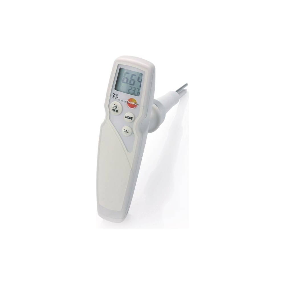 Портативный pH-метр Testo 205 предназначен для определения температуры и уровня pH в сфере пищевой промышленности. Результаты измерений выводятся на дисплей с подсветкой, облегчающей работу при недостаточном освещении. Благодаря полой диафрагме между измерительным электродом и корпусом прибор не подвержен загрязнению. В качестве источника питания используются батареи типа LR44.