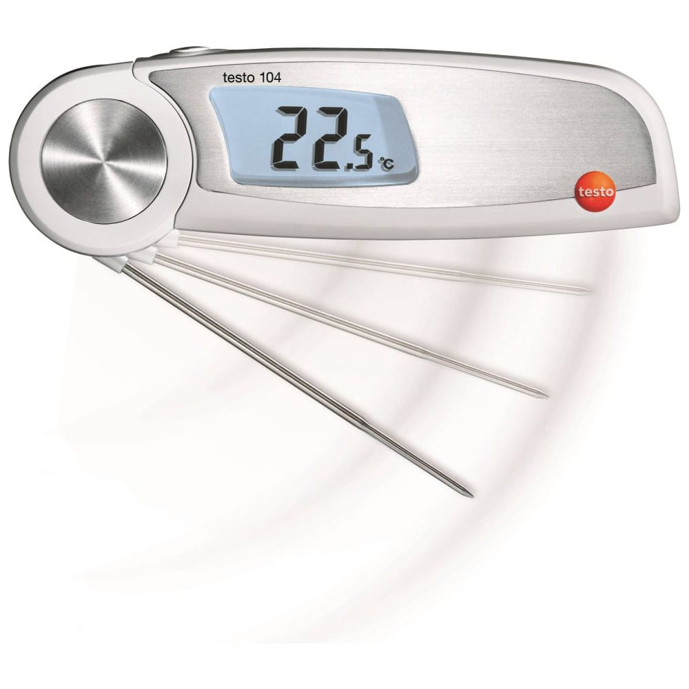 Термометр с убирающимся зондом Testo 104 с поверкой в диапазоне от -40 до 250 C 0563 0104П быстро и точно измеряет температуру продуктов. Простое и понятное управление термометром позволяет в короткий срок приступить к работе. Складной термометр testo 104 соответствует требованиям HACCP и EN 13485. Дополнительные характеристики: Погрешность: ±1,0 гр (-50 до -30,1 гр) / ±0,5 гр (-30 до +99,9 гр) / ±1 % от изм. знач. (+100 до +250 гр) Разрешение: 0.1 гр Быстродействие t99: t99 = 10 с. (measured in moving liquid) Корпус: TPE-поликарбонат, ABS-поликарбонат, ABS c 10% стекловолокна Класс защиты: IP65 Product colour: white Длина трубки зонда: 102 мм Длина наконечника трубки зонда: 32 мм Диаметр трубки зонда: 3 мм Диаметр наконечника трубки зонда: 2,3 мм Частота измерений: 0,5 с. Другие характеристики: Autohold ,hold, мин./макс. Стандарты: EN 13485 Директивы ЕС: 2004/108/EG Тип дисплея: LCD с подсветкой Размер дисплея: Размер дисплея: одна строка