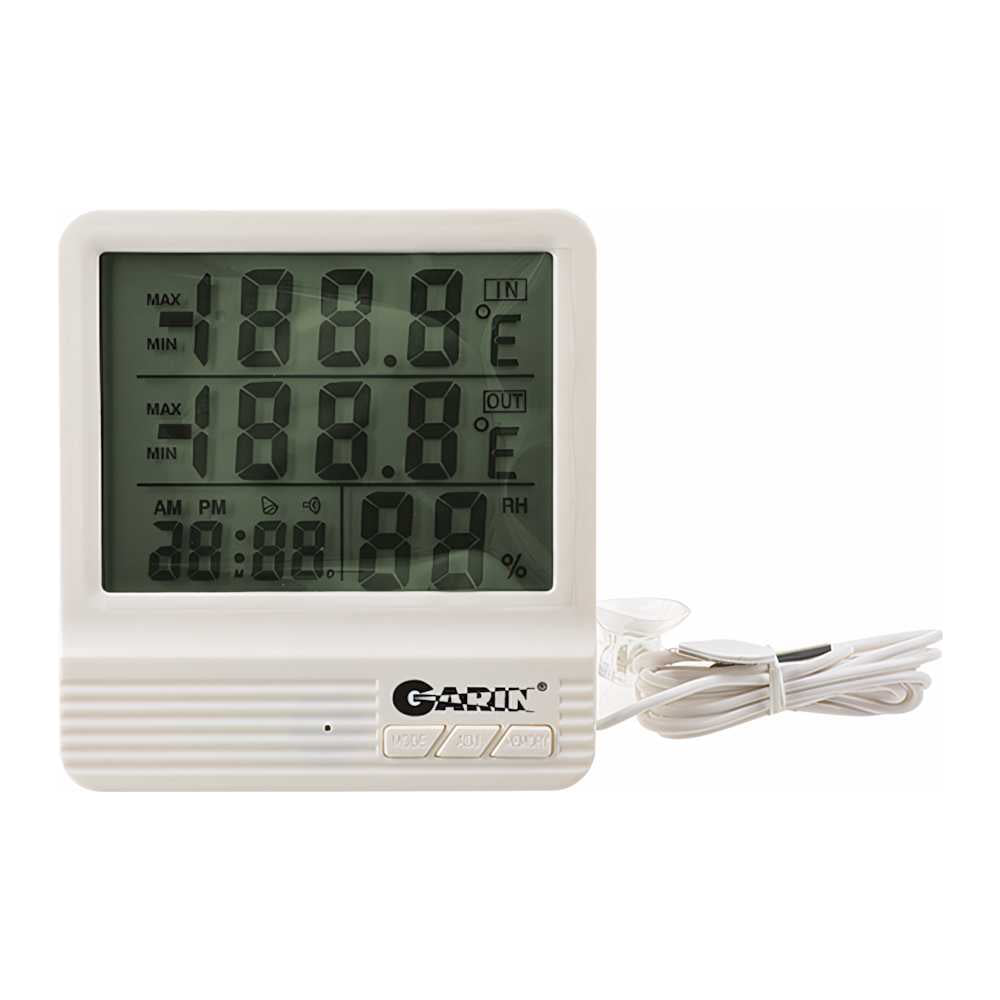Метеостанция Garin WS-4, термометр-гигрометр-часы-календарь, с внешним датчиком 16940 используется для определения влажности и температуры воздуха в помещении и на улице. Для лучшей видимости предусмотрен большой дисплей с крупными цифрами. Для крепления датчика предусмотрена присоска в комплекте и клейкая поверхность. Метеостанция имеет внутреннюю память и может запоминать максимальные и минимальные значения влажности и температуры.