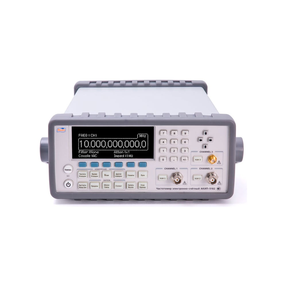 Частотомер АКИП 5102 используется с целью измерения частоты и периода, пикового напряжения, счета импульсов, временного интервала, отношения частот, фазового сдвига между сигналами, длительности и скважности импульсов, времени нарастания/спада импульсов. Для простоты считывания вся необходимая информация выводится на экран. Память прибора рассчитана на 20 профилей настроек (запись/вызов). Наличие USB кабеля позволяет подключаться к ПК для передачи данных.