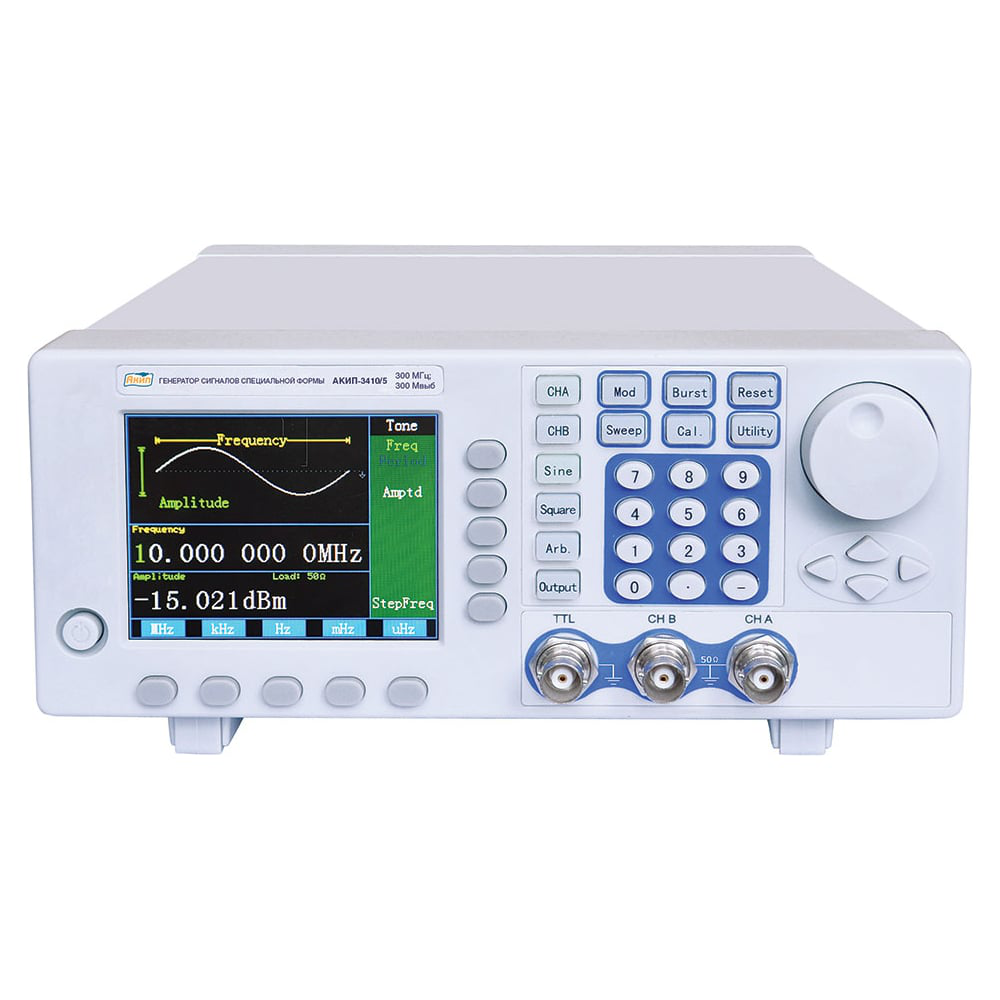 Генератор сигналов АКИП-3410/5 применяется для генерации сигналов стандартной формы. Это измерительный прибор, принцип действия которого основан на технологии прямого цифрового синтеза. Имеет два независимых выхода, что позволяет прикладывать сигнал генератора, не имея ограничений относительно распределения потенциалов, существующих в тестируемом устройстве. Генератор широко используется для экспериментальных исследований и образовательных приложений, в лабораторном тестировании, электронном моделировании, имитации сигналов окружающей среды, отладке и ремонте РЭА. Прибор имеет удобное меню и конфигурацию органов управления, большой цветной дисплей.