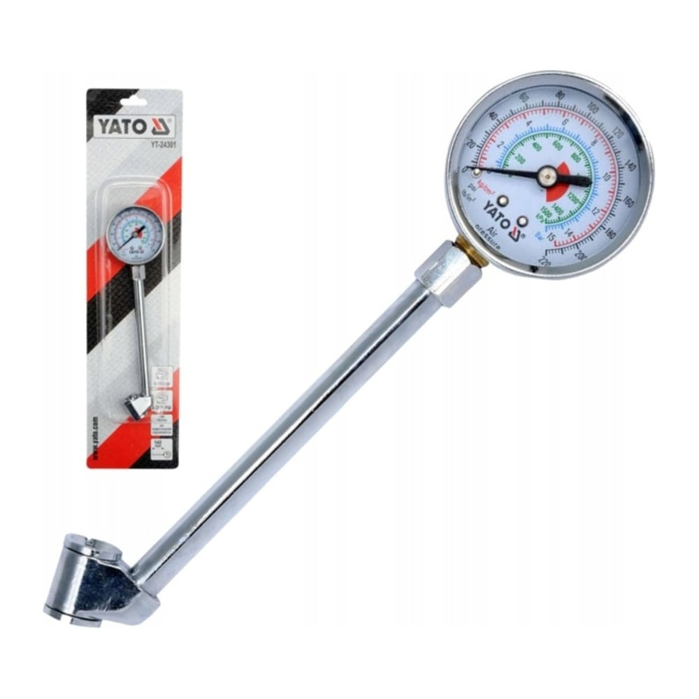 Манометр для грузовых автомобилей YATO YT-24301 - прибор для измерения давления в шинах.Корпус из металла обеспечивает долгий срок службы прибора. Благодаря компактным размерам устройство не занимает много места, и его удобно возить с собой.Диапазон измерений 0-15 / 0-220 бар/кв. дюймДлина 195 ммРабочая длина 140 ммДиаметр манометра 50 мм