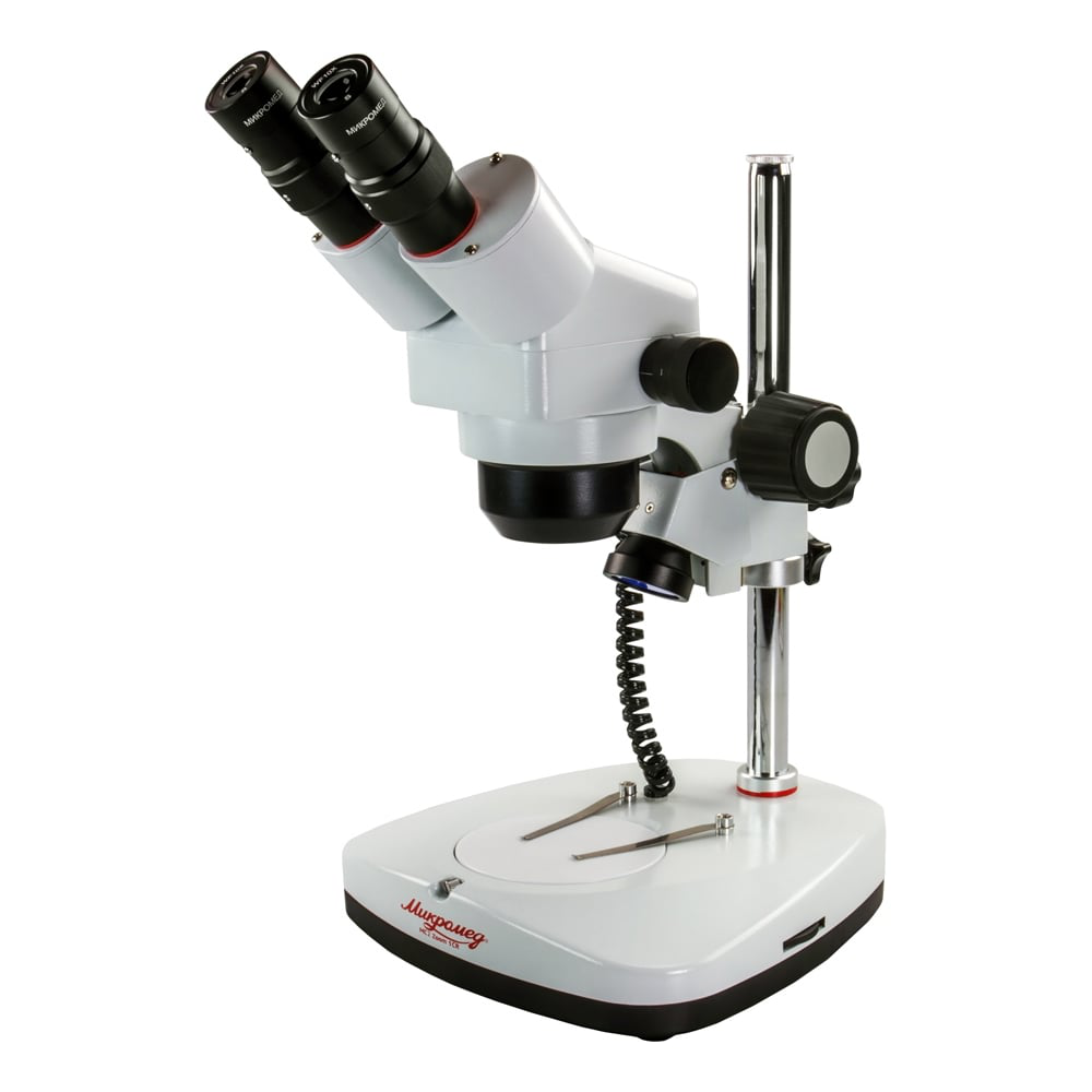 Стереоскопический микроскоп Микромед МС-2-ZOOM вар.1CR 10563 используется для проверки и разборки точных и измерительных инструментов, в обучающих экспериментах, для проведения исследований и точных технологических операций. Конструкция визуальной насадки микроскопа позволяет выводить изображение в режиме реального времени на экран ПК с помощью видеоокуляра (видеоокуляр в стандартную комплектацию не входит). Наблюдение может производиться как при искусственном, так и при естественном освещении в отраженном свете. Клеммы с пружинным механизмом позволяют удобно расположить препарат на предметном столике.