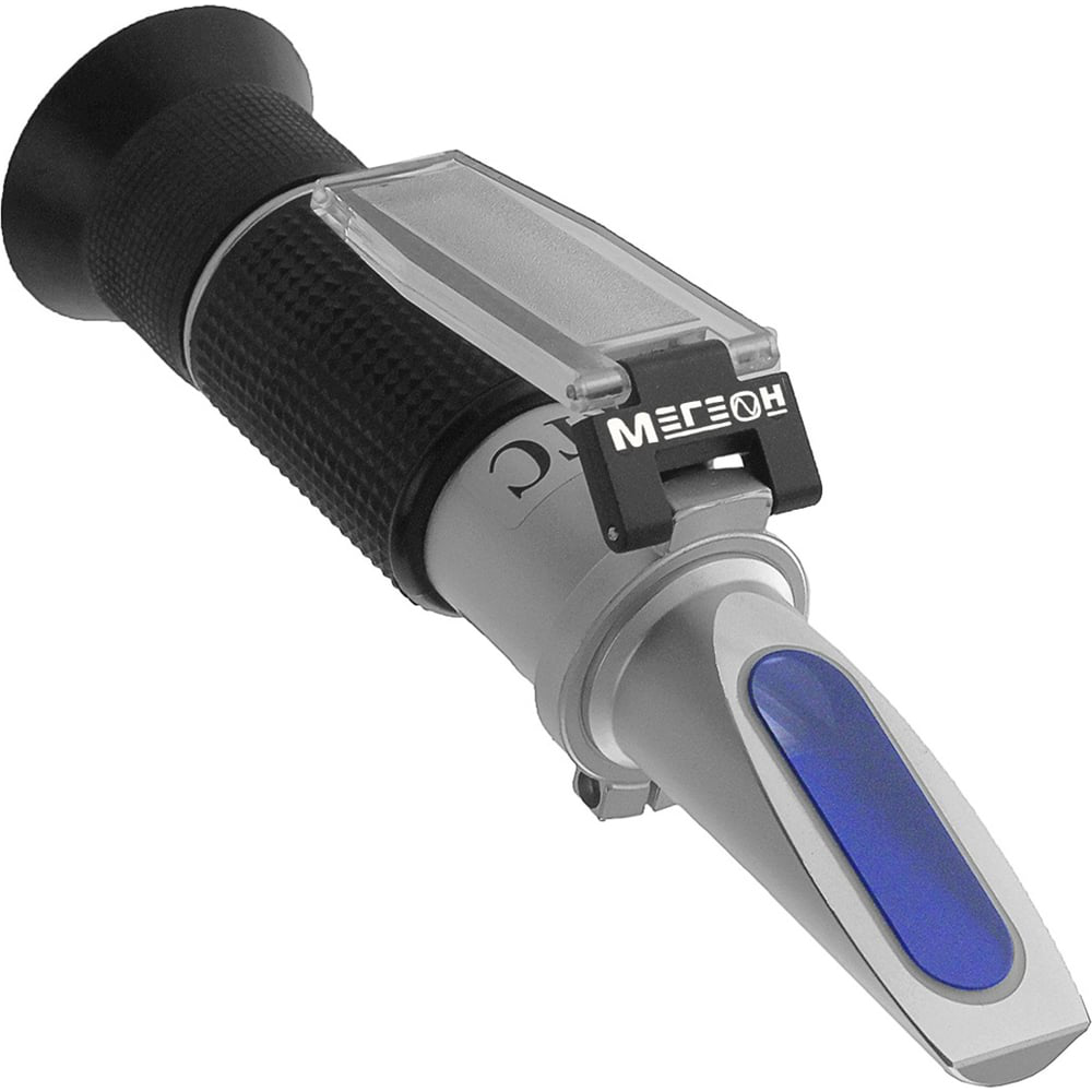 МЕГЕОН 72003 относится к оптическим измерительным приборам - рефрактометрам, которые предназначены для определения коэффициента преломления исследуемого вещества и проецировании отраженного света на специально отградуированный экран. Характеристики жидкости (концентрация, плотность и т.д.), устанавливаемые рефрактометром, определяют вид шкалы, нанесенной на экран. Для повышения точности предусмотрена система автоматической температурной коррекции (ATC), которая имеет широкий температурный диапазон работы. Для исследования достаточно нанести две- три капли на призму с градуировкой, закрыть прижимное стекло и настроить фокусировку. Не требуется источник питания, что даёт возможность производить измерения при низких температурах. Эргономичный корпус из алюминиевого сплава и простота эксплуатации максимально увеличивают срок службы изделия.