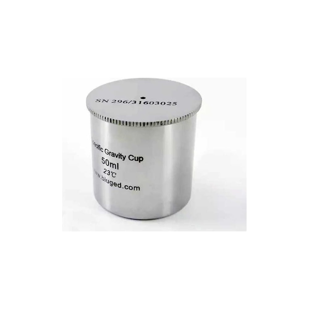 Пикнометр Biuged BGD 296/3 – точный прибор, выполненный из нержавеющей стали или анодированного алюминия, предназначенный для определения удельной плотности красок и схожих жидкостей. Гарантированная точность при этом составляет 0.1%. Тестирование производится в соответствии со стандартом ISO при температуре 23 ±2 °C. Данные приборы представляют собой цилиндрическую емкость с крышкой, в которой имеется отверстие для выпуска избытка жидкости (краски) при сильном нажатии на крышку. Такое надавливание также гарантирует избавление образца от пузырьков воздуха (или воздушных карманов). Приборы соответствуют стандартам DIN 53217, ISO 2811 и BS 3900 A19. Дополнительные характеристики: Емкость: 50 сc/мл; Единицы: метрические; Материал: нержавеющая сталь.