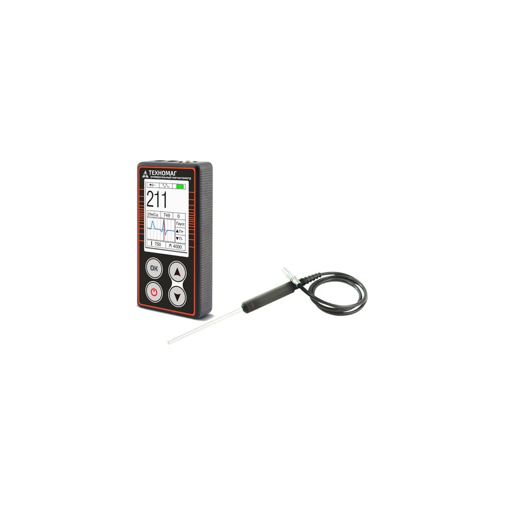 Универсальный магнитометр ТЕХНОМАГ предназначен для измерения индукции/напряженности постоянного магнитного поля и ее градиента, пиковых и среднеквадратичных значений индукции/напряженности переменного магнитного поля, пиковых значений индукции/напряженности однократных импульсов магнитного поля. Он позволяет решить широкий круг измерительных задач. Особенности универсального магнитометра ТЕХНОМАГ: Использование широкой номенклатуры преобразователей (датчик Холла, магниторезистивный, феррозондовый); Широкий диапазон измерения постоянных, переменных, импульсных полей; Эргономичный корпус из прочного алюминия и ABS-пластика. Он надежно защищает компоненты магнитометра от ударов и повреждений; Встроенный Li - Ion аккумулятор с зарядкой от USB; Разъем LEMO 0B для подключения преобразователей; Большой цветной ЖК-дисплей с разрешением 320х240. Диапазон измерения для преобразователя П-1М/С, А/см(мТл)±8-2400(1-300) Диапазон измерения для преобразователя Г-2С, А/м(мкТл)±1-1600(1-2000) Дискретность измерения для преобразователя П-1М/С, А/см(мТл)1(1)Дискретность измерения для преобразователя Г-2С, А/м(мкТл)1(1 Предел допускаемой абсолютной погрешности, где Н – измеряемая величина± (0,03*Н+2) Диапазон частот переменного магнитного поля, Гц0,2-100 Базовое расстояние градиентометрического преобразователя, мм20 Длительность однократного импульса магнитного поля, мС1- 2500