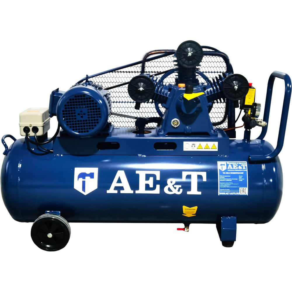 Компрессор AE&T 100л 440л/мин 380В TK-100-4 используется для получения сжатого воздуха с последующей его подачей в пневмоинструмент. Подходит для небольших и средних станций технического обслуживания и шиномонтажей, а также для производства и строительства. Ресивер объемом 100 литров обеспечивает продолжительную работу с оборудованием. На устройстве установлен датчик давления и предохранительный клапан для дополнительной безопасности при работе. Также имеется возможность визуального контроля уровня масла для быстрой заправки в случае необходимости. Оснащен клапаном сброса избыточного давления воздуха, а также регулятором давления, что обеспечивает безопасную работу устройства. Компрессор оснащен удобной тяговой ручкой и колесами, что облегчает процесс его транспортировки по рабочей площадке.