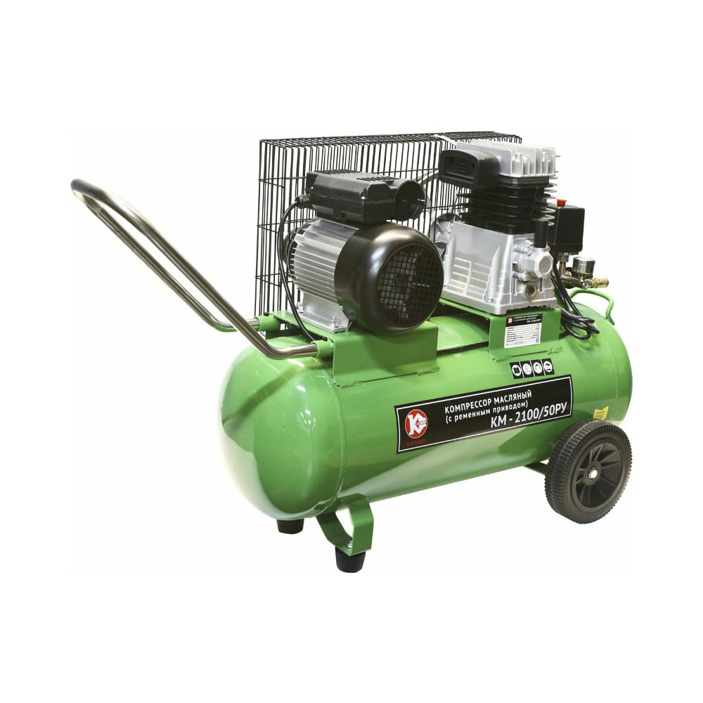 Ременной компрессор Калибр КМ-2100/ 50РУ 00000059439 оснащается качественным асинхронным двигателем, управление которым осуществляется при помощи реле давления (устройство отслеживает степень нагнетания воздуха в ресивере и останавливает/запускает двигатель в случае избыточного/недостаточного давления). Агрегат успешно используется для снабжения пневмоинструментов воздухом под давлением 10 бар. Рекомендуется повторно-кратковременный режим работы (чередование 15 минут эксплуатации и 5 минут отдыха).