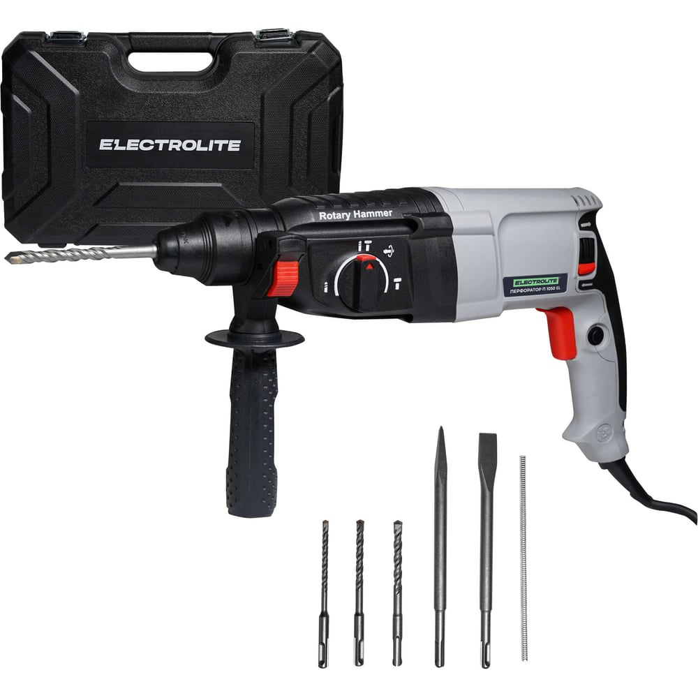 Перфоратор сетевой ELECTROLITE П 1050 EL является самой популярной разновидностью машин для долбления и сверления, так как он совмещает в себе самые главные качества домашнего перфоратора: вес, эргономичность, качество и стоимость. Перфоратор для сверления ELECTROLITE, обладает рядом отличительных особенностей, которые увеличивают срок службы инструмента и доставляют удовольствие при работе с ним, а именно щеточный реверс, с помощью которого изменение вращения вала происходит без особого труда, а механизм электро-перфоратора не подвергается износу. Ротор и статор перфоратора выполнены из высококачественной меди, что предотвращает перегрев и выход из строя оборудования. Перфоратор электрический имеет три режима работы (сверление, удар, удар со сверлением), что в свою очередь, делает оборудование очень практичным в бытовых и профессиональных целях