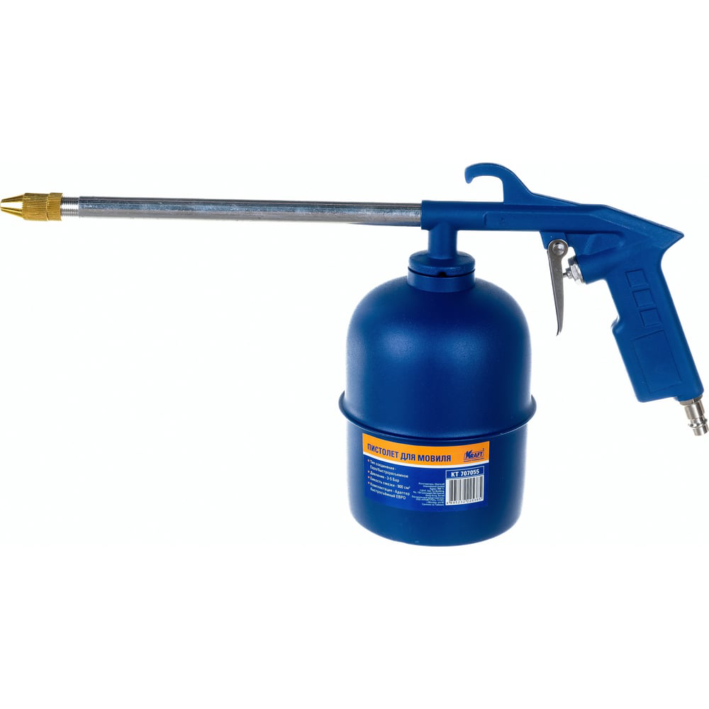 Моечный пистолет предназначен для чистки различных поверхностей от загрязнений, а также антикоррозийной обработки. Пистолет Kraft устойчив к механическим повреждениям, наличие длинного узкого сопла позволяет использовать инструмент в труднодоступных местах. Давление - 3-5 Бар, емкость смазки - 900 см (куб), тип соединения - евро (быстросъем)