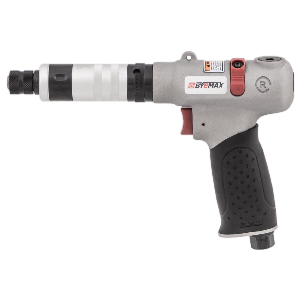 Пневмошуруповерт BYEMAX BM-AS204 – легкий, компактный и крайне надежный сборочный пневмошуруповерт пистолетного типа с автоотключением. Диапазон момента затяжки 0,3-2,9 Нм. Отличается высокой производительностью и большим эксплуатационным ресурсом. Отличительные особенности: Наружная регулировка момента затяжки Планетарная система передачи с игольчатыми подшипниками обеспечивает точный и постоянный момент затяжки Три варианта подвода воздуха дают свободу действий по оптимизации рабочего места и удобства работы Небольшой вес, эргономичная обрезиненная рукоять, низкий уровень звукового давления Выхлоп отработанного воздуха сзади
