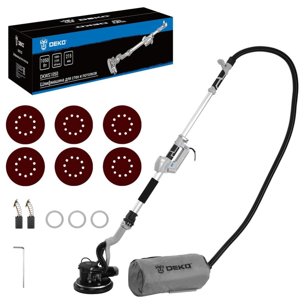 Шлифмашина для стен потолков DEKO DKWS1050 предназначена для шлифовки отделочного слоя гипсокартона, потолков и внутренней кладки, а также для удаления остатка обоев, краски, покрытий, клея и старой штукатурки. Ее также можно использовать для шлифовки полов. Модель оснащена встроенным пылесосом.