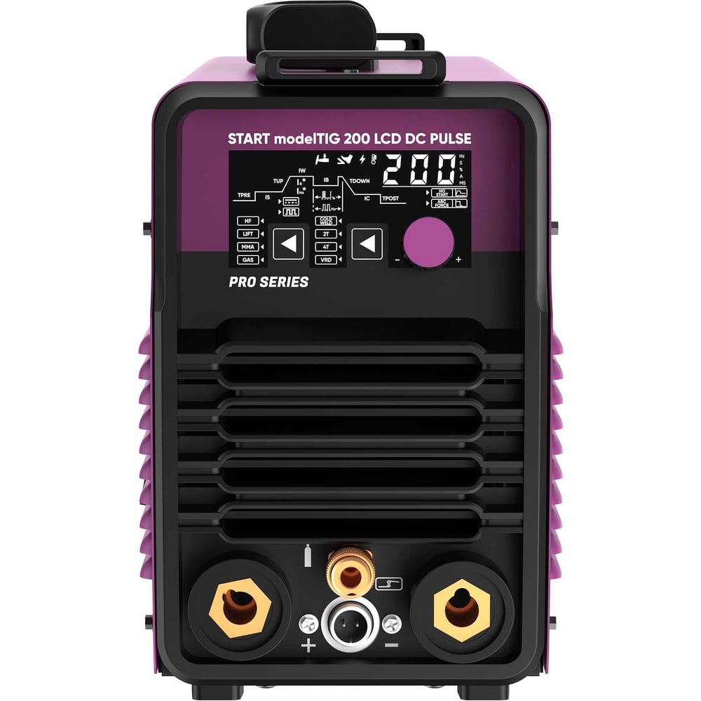 Инверторный источник для аргонодуговой сварки на постоянном токе TIG DC и сварки штучными электродами MMA. Профессиональный аппарат с простой и интуитивно понятной панелью управления, удобная циклограмма и информативный дисплей для удобства использования аппарата в работе. Применяется для сварки нержавеющей, углеродистой стали, различных сплавов, титана и т.д. Импульсный режим позволяет получить более красивый вид сварочного шва и контролировать тепловложения в зоне сварки. С помощью интуитивно понятной панели управления легко настроить любые параметры сварочной дуги под решаемые задачи. Выбор режимов работы аппарата: HF – режим TIG сварки с бесконтактным поджигом LIFT – режим TIG сварки с контактным поджигом ММА – режим ручной дуговой сварки штучными электродами GAS – проверка защитного газа Выбор работы в режиме TIG и MMA: 2Т – двухтактный режим работы TIG 4Т – четырехтактный режим работы TIG VRD – снижение напряжения холостого хода в режиме ММА сварки COLD WELD – режим сварочной точки