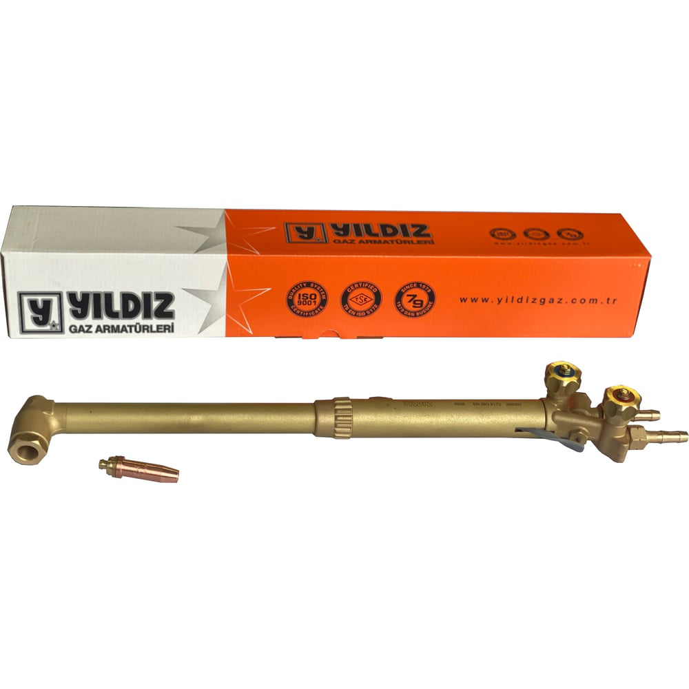 Пропановый резак YILDIZ PYROCOPT L=550 мм GAZ 4508 относится к рычажному типу с внутрисопловым смешиванием газов. Используется для кислородной резки металлических конструкций. Рабочий газ - пропан. Жесткая конструкция обеспечивает надежность в работе и долгий срок службы. Данная модель соответствуют стандарту EN ISO 5172. Дополнительные характеристики: Соединение для кислорода: М16х1,5RH; Соединение для горючего газа: М16х1,5LH; Угол наклона режущей головки: 90°