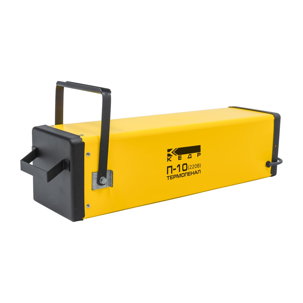 Термопенал (220В, 150C, загрузка 10кг) КЕДР П-10 8007887 имеет небольшие размеры и идеально подходит для просушки, хранения и подогрева небольших партий электродов. Преимущество устройства заключается в небольшом потреблении энергии. Компактное устройство используется на строительных площадках при монтаже железо-бетонных конструкций, при прокладке труб и других работах. В комплекте к пеналу поставляются крепежные элементы для рукоятки, что позволяет переносить изделие без особых усилий.
