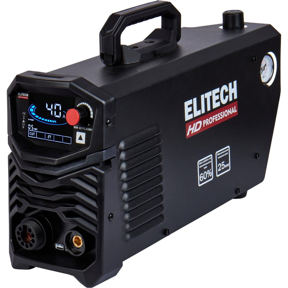 ELITECH «HD PROFESSIONAL» - серия инструментов для интенсивной работы, требующей высочайшей точности исполнения. Инструменты серии « HD PROFESSIONAL» сохраняют функциональность в экстремальных условиях окружающей среды. Они имеют максимальные степени защиты от перепадов температуры, влаги, пыли, перегрузок. Отличаются высокой ремонтопригодностью и высоким ресурсом. Созданы для профессионалов и для экстремальных условий.Инвертор воздушно-плазменной резки со сжатым воздухом ELITECH HD WM 40 PLASMA предназначен для быстрого и качественного реза без деформации стали, алюминия, меди, нержавеющей стали, титана и его сплавов. Изделие выполнено из высококачественных материалов, благодаря чему отличается надежностью и долговечностью.