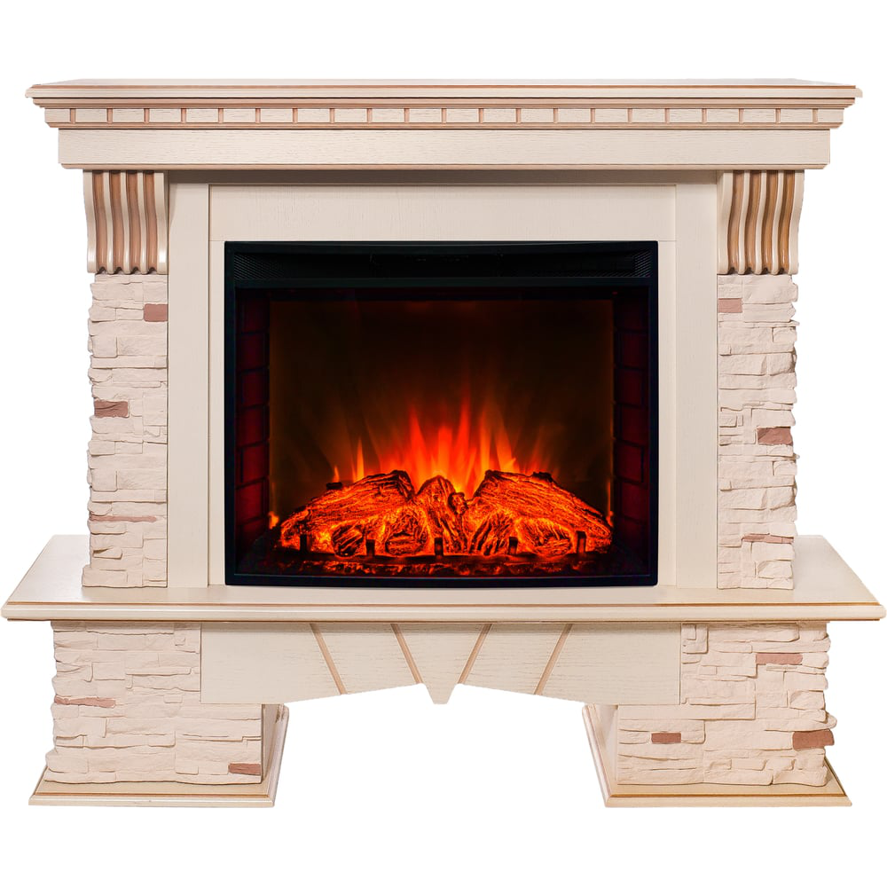 Комплект RealFlame SORENTO 25.5 WT + EVRICA 25.5 выдержан в светлой гамме, где дерево слоновой кости гармонично сочетается с кремовыми облицовочным камнями искусственного происхождения. Устройство относится к стилю кантри, поэтому не имеет никаких вычурных декоров и отличается простой элегантною линий.Широкий панорамный электроочаг Evrika 25,5 LEDс реалистичным муляжом прогоревших поленьев. Функционал позволяет использовать его как дополнительный источник тепла в холодное время года. Проекция пламени и муляж дров подсвечиваются светодиодами, благодаря чему, в декоративном режиме очаг потребляет минимум электроэнергии. Панорамное стекло в сочетании с тонкой рамкой корпуса значительно увеличивают угол обзора и подчеркивают лаконичный дизайн данной модели.Очаг с функцией обогрева. 2 уровня регулировки мощности обогрева. Мощность обогрева: 0,75/1,5 кВтПульт ДУТаймер отключенияЗащита от перегреваРегулировка яркости пламениЗвуковой эффект
