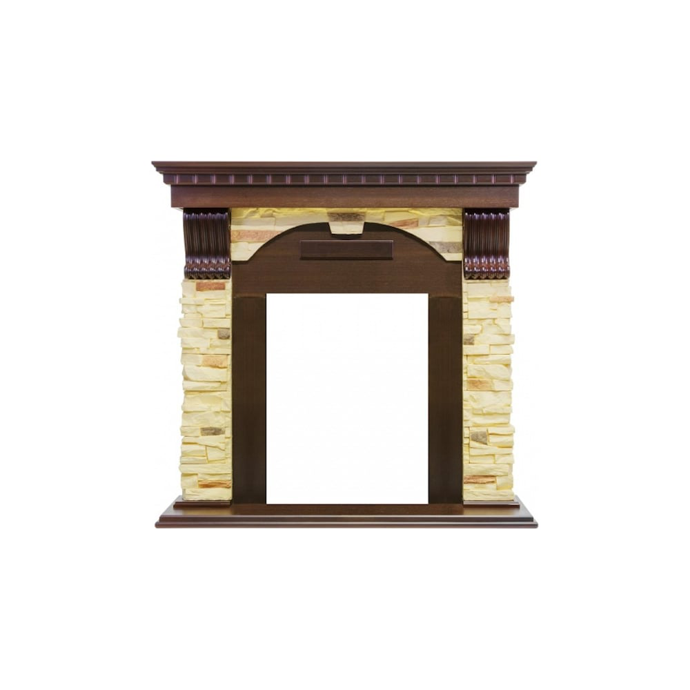 Портал Dublin выполнен в классическом стиле с античными элементами. Боковые колонны из светлого камня, стилизованного под натуральную сланцевую породу, дополнены резными узорами контрастного цвета. Столешница и постамент выполнены из дерева. Такое сочетание материалов подчеркивает изысканность портала и делает его выгодным приобретением для практических любых интерьеров. Сочетается с классическими моделями очагов бренда Royal Flame с имитацией реалистичного огня