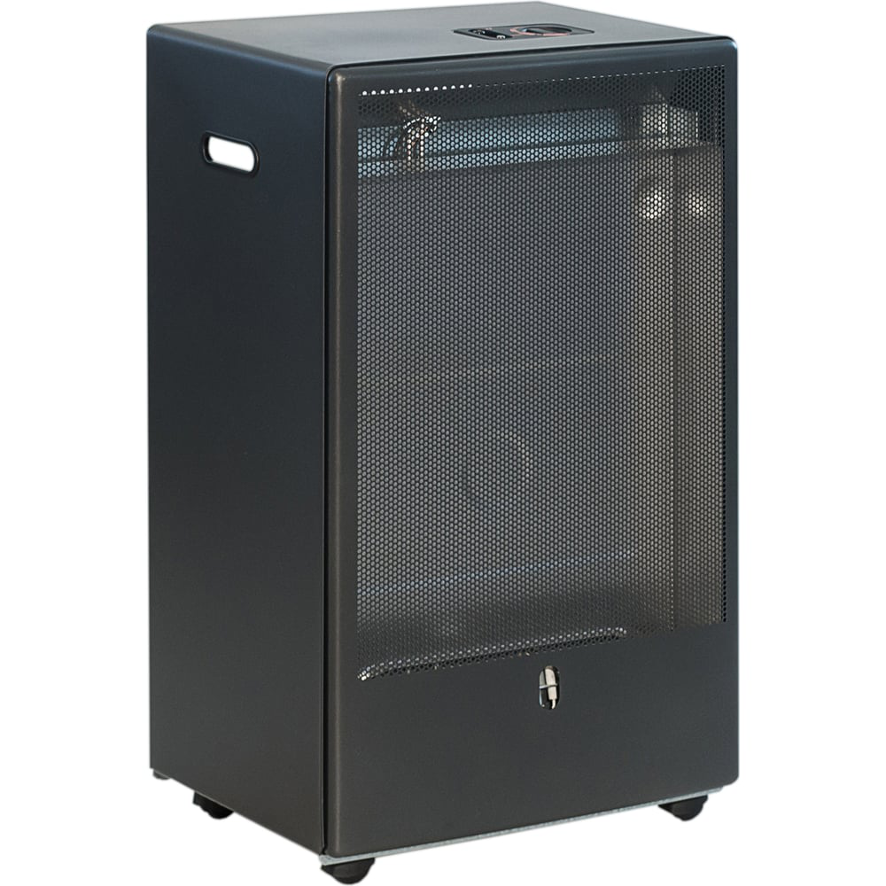 Обогреватель каминного типа ТМС 4,2 кВт, чёрный BLUE BELLE ТО Black оборудован термостатом ON/OFF. Уникальный термостат для рынка обогревателей! Пламя горелки автоматически гаснет при достижении необходимой температуры в помещении и снова загорается при снижении температуры. Эта функция, помимо оптимизации расхода топлива, экономит кислород в помещении. Модель имеет современный дизайн и легко впишется в любой, даже самый изысканный интерьер вашего дома. Мобильность устройству придаёт наличие роликов, которые обеспечивают удобное размещение в интерьере.