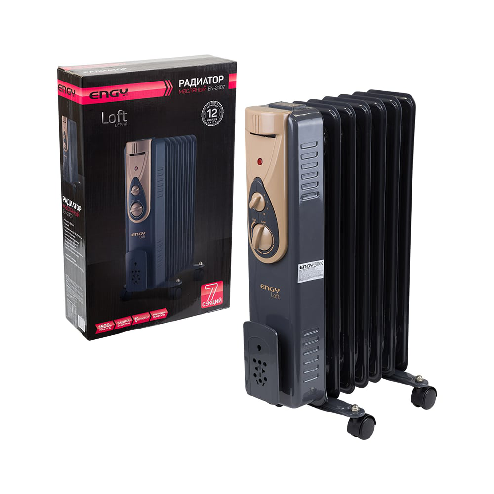 Масляный радиатор Engy EN-2407 Loft 015124 оснащен регулируемым термостатом для поддержания постоянной температуры, которая задана пользователем.Устройство имеет 7 секций с компактным типоразмером. Габариты секции - 120х500 мм.Прибор монтируется на колесики, которые входят в комплект поставки.Размеры 54х31х24 см (с учетом колес).Гарантийный срок: 12 месяцев.
