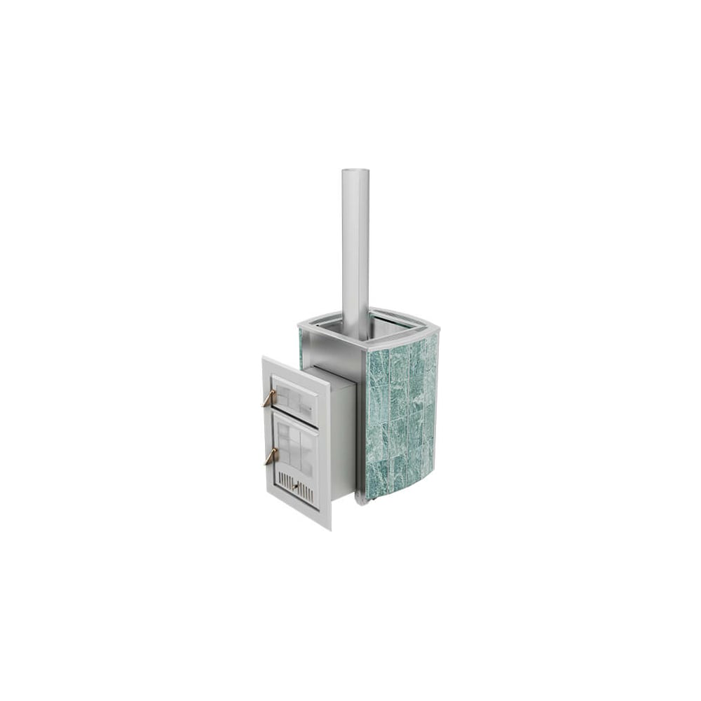 Дровяная печь для бани VVD Чародейка 2021, топка сталь нержавеющая AISI439 4 мм, облицовка змеевик 10003 предназначена для парных помещений объёмом до 30м.куб. Топочный агрегат изготовлен из коррозионностойкой, жаростойкой стали AISI 439. Для усиления жёсткости и увеличения площади суммарной теплопередающей поверхности, стенки агрегата оборудованы треугольными ребрами-регистрами. Эффективное размещение каменки в конструкции топочного агрегата, большая площадь контакта её поверхности с пламенем (пламя охватывает каменку с 5-ти сторон) позволяют быстро нагреть большое количество камней для парообразования до высокой температуры и получить великолепный пар.