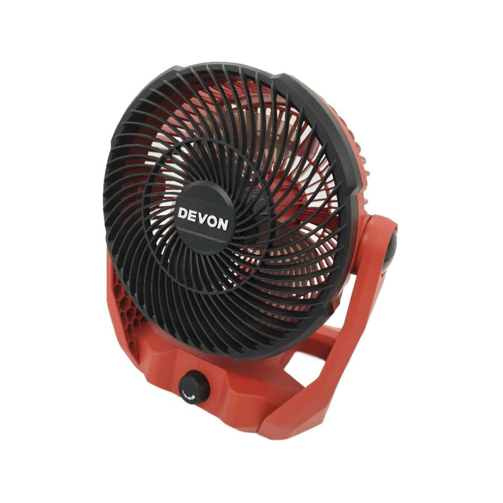 Аккумуляторный вентилятор Devon 6801-Li-20 работает от батарей с напряжением 20 В, обеспечивает скорость потока воздуха до 375 м/мин и производительность до 14 м³/мин. Время работы в экономичном режиме составляет 32,5 часа (при использовании АКБ емкостью 5 Ач).