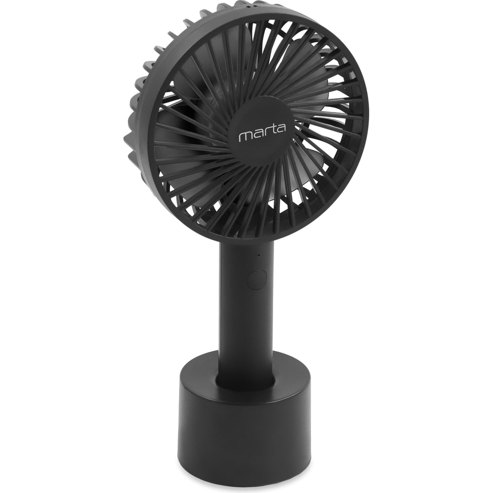 Портативный USB вентилятор Marta работает от встроенного литий-ионного аккумулятора ёмкостью 1800 мА/ч (типоразмер 18650) Время работы от аккумулятора до 5 часов В комплекте идёт подставка для установки вентилятора на стол Три скорости работы LED-индикатор работы и зарядки Зарядка аккумулятора осуществляется от USB порта, кабель USB-microUSB в комплекте Компактные размеры сделает вентилятор незаменимым как дома, так и в дороге
