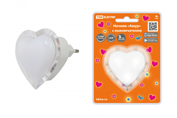 Ночник Амур с выключателем - это стильный и функциональный светильник, который создаст уютную атмосферу в вашем доме. С ярким светом мягкого оттенка, этот ночник идеально подойдет для использования в спальне, детской комнате или прихожей.Светильник оснащен выключателем, что делает его использование удобным и практичным. С потреблением всего 0,3 Вт, он экономичен и энергоэффективен. Работает от стандартного напряжения 220 В.