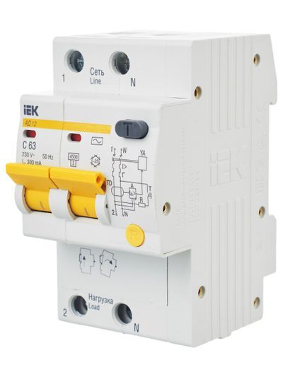 В изделиях предусмотрена индикация срабатывания от дифференциального тока, а для АД12М также светодиодная индикация включенного состояния. АД12М сохраняет работоспособность при снижении напряжения электрической сети до 110 В.