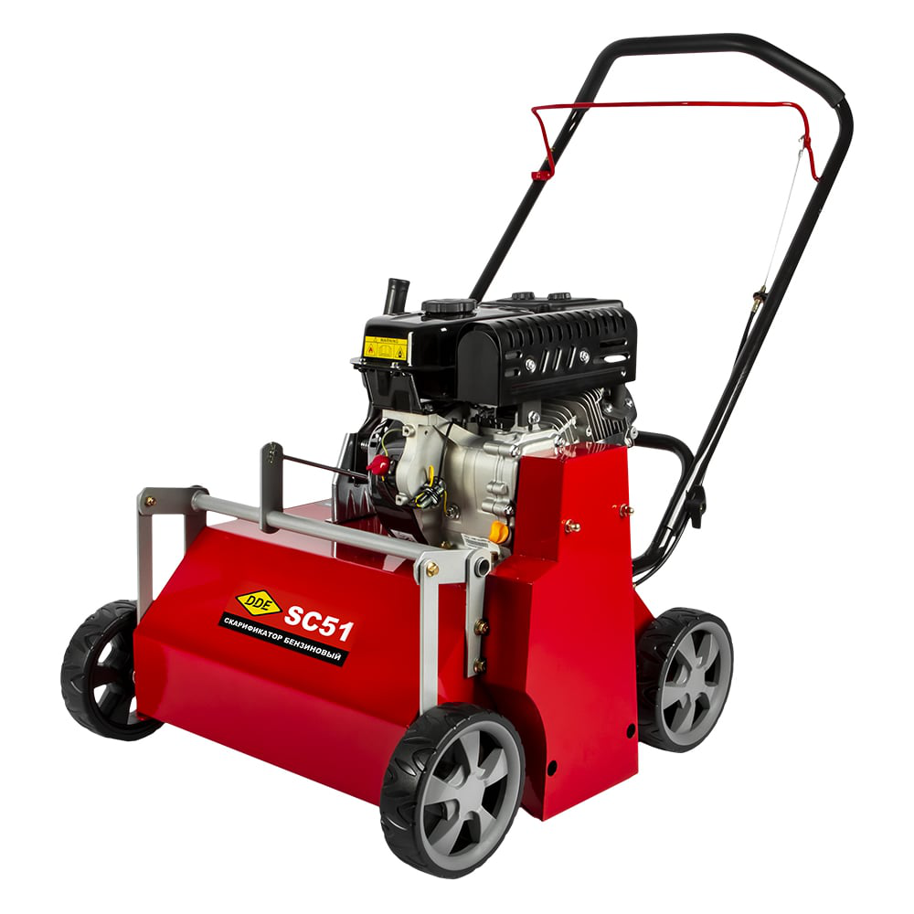 Скарификатор DDE SC 51 909-150 предназначен для удаления плотного дернового слоя, отмерших корней, сорняков, мха и прочего мусора из газонов. Глубина обработки удобно регулируется с помощью специального рычага в диапазоне от -12 до +12 мм. Подходят модели свечей: DDE LR5YC, Champion RN9YC, Bosch WR7DC, NGK BPR6ES.